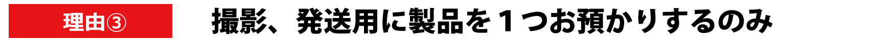 製品は撮影用、発送用に1つだけお預かりします。売れた場合やカートに入れられる件数が多い場合はお預かりする個数を相談させていただきます。なお、1つ発送後は注文が入るたびに当社に発送いただくという形態でも対応可能です。