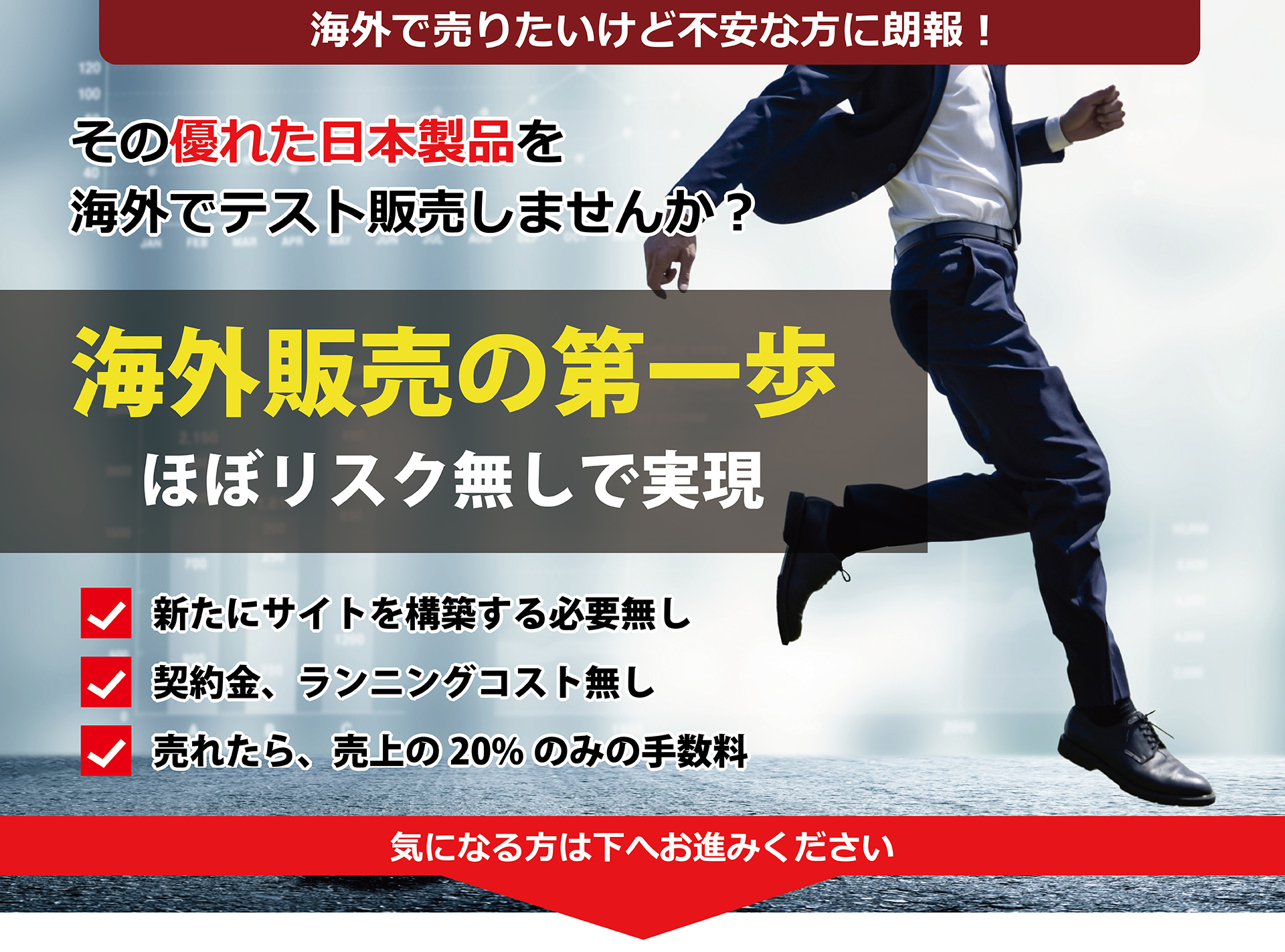 当社のサイトに、既存製品以外の日本製品を掲載し、既存のお客様や新規のお客様に興味・関心を持っていただき、購入いただくことでファンになっていただくことが目的ですので、契約金やランニングコストは一切かかりません。